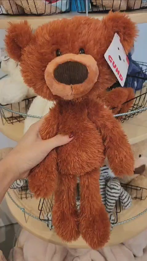 Pumpkin Pie has been waiting all year for the brisk chill of the autumn air and now he can`t wait to join playtime with you! This sweet plush bear thoughtfully chooses the coziest sweaters to layer, the tastiest cider to sip, and makes the most of every short fall day. As our newest addition to the Toothpick collection, this festive 15 spice-colored bear has deep burnt orange plush and the same chocolate-brown corduroy nose and soft plush muzzle as the original Toothpick. He`s the perfect partner for sharing those irresistible pumpkin spice lattes! These special bears and GUND Take-Along Friends have slender structured bodies with oversized, playfully floppy limbs that allow them to pose in any collection or act as adorable and eye-catching room decor. Whether picking apples or jumping into a crunchy pile of leaves, Pumpkin Pie is the perfect partner for welcoming sweater weather with a smile! Toothpick is one of our all-time best-selling teddy bears, known for its iconic slender silhouette with floppy limbs. This adorable teddy bear's design is the perfect size for bringing anywhere adventure takes you! Throughout the years, we`ve made Toothpick in a variety of colors and premium fabrics, fitting the tastes of collectors and cuddlers of all stripes. We`ve also introduced the Take-Along Friends collection, which features other Toothpick-inspired animal personalities and unique designs. The Baby GUND Lil` Luvs collection even features smaller Toothpick-inspired plush pals for babies, so Toothpick is truly perfect for any generation of teddy bear lover! Appropriate for ages 1 and up. Ships in a protective poly bag.
