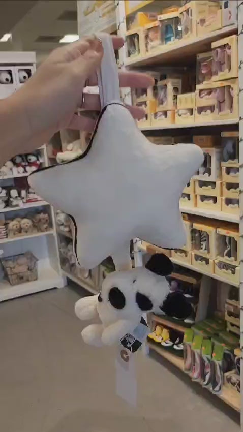 The Bashful Black & Cream Puppy Musical Pull is a soothing gift to help babies drift off. Our most loved black-and-white pup has gorgeous cream fur with liquorice-coloured patches made with recycled fibres and holds on tight to a concertina pull. Gently pull Puppy and an original Jellycat lullaby will play from the stylishly monochrome trimmed star.
