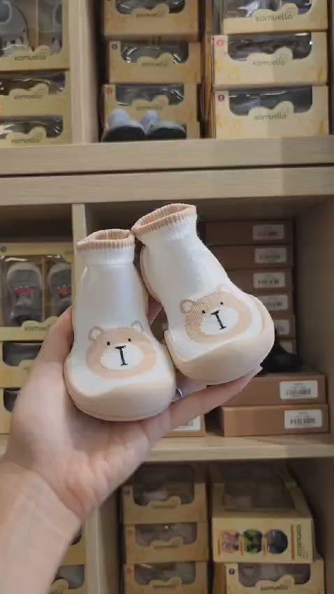 So cute just like a teddy bear! Its neutral colors make it easy to wear with any outfit. Cloud white sock, natural tan rubber sole & trim at the ankles. This style makes a best friend for your little one to tag along with.