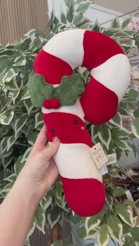 It's not Christmas without a candy cane! And Mon Ami's Candy Cane Plush Toy is an extra-special sweet treat. Featuring a cute-as-can-be embroidered face and oh-so-festive sprig of holly, our pretty pink Christmas plush toy gives a peppermint twist to a kid's playroom. You can also ensure your Christmas display is in mint condition with our personality-packed candy cane plush toy, easy to mix with other tasty Christmas plush toys from our holiday collection.