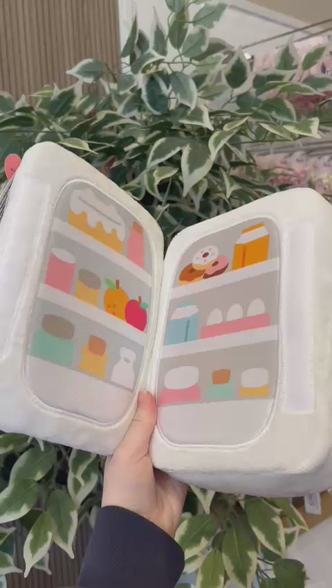 - PUSHEEN REFRIGERATOR PLUSH: Pusheen is an irresistibly cute refrigerator, here to keep all of your delicious snacks fresh! This large, 9.5` plush shows Pusheen as a white fridge with pink stripes and a colorful, detailed food design on the inside.