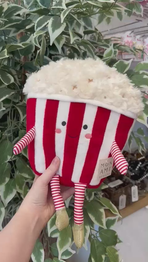 Get ready for a jumbo-sized serving of fun with Mon Ami's plush popcorn! This cuddly delight is here to pop its way into your heart and turn any occasion into a laugh-out-loud, smile-filled memory. With its vibrant red and white bucket-like body overflowing with fluffy popcorn "kernels," it's as adorable as it is whimsical. Add in a beaming smile, rosy blushing cheeks, and the most playful striped arms and legs, and you?€?ve got the perfect party guest! Whether it's for a birthday bash, movie night, or just a fun surprise, this plush popcorn is sure to sprinkle joy wherever it goes!??