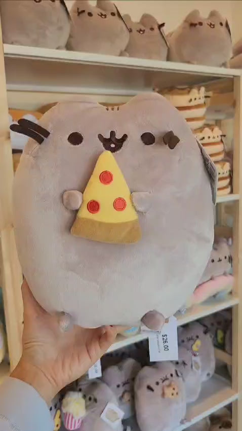 Bring home your favorite snack and your favorite feline with the cuddly, food-forward Snackables collection by GUND! Pusheen Snackables feature the famous tabby cat with a range of her favorite snacks, doing what she does best: being irresistibly cute and munching to her heart`s delight. This cute, super-soft 9.5 plush features Pusheen about to chow down on a delicious slice of pepperoni pizza. Each Pusheen Snackables plush is designed with premium soft, surface-washable plush and ships in a protective poly bag. Appropriate for ages 8 and up. Pusheen is the sweet, lazy, plump tabby cat who loves to bring smiles and laughter to people worldwide in her popular webcomic, which is followed by over 10 million social media fans. Our collection of GUND Pusheen plush toys brings this lovable kitty and her adventures with Sloth, Stormy, Pip, Cheek, and more to your home, desk, or wherever you might want a smile. GUND Pusheen stuffed animals make adorable home decor and are the perfect gifts for cat lovers, Pusheen fans, and collectors of kawaii plush.