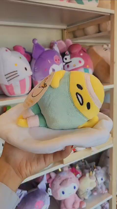 Gudetama can`t be bothered to exercise, so don`t even try. This adorable 5 Gudetama plush features everyone`s favorite egg sporting a teal workout unitard and pink sweatbands, while lounging on a super-soft plush egg white holding a sideways plank position. Each GUND Gudetama plush is surface-washable for easy cleaning and ships in a protective poly bag. Appropriate for ages one and up.