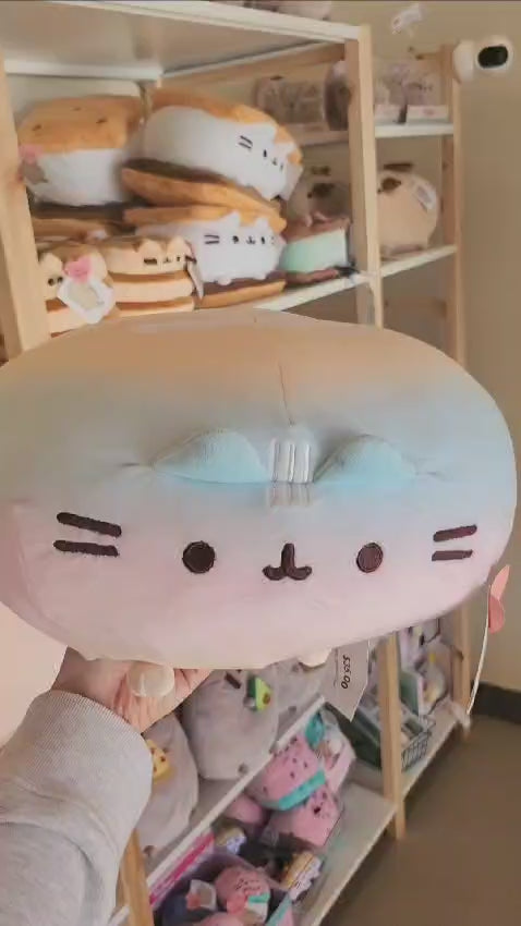 Pusheen is here as a round, delightfully squishy Squisheen! Made from a super-soft elastic fabric, this round pastel rainbow ombre Pusheen plush stands 11 tall and features Pusheen`s signature smile, paws and tail, all in a huggable round shape. Available in multiple colors and surface-washable for easy cleaning. Appropriate for ages 8 and up. Each Pusheen Squisheen plush ships in a protective poly bag. Pusheen is the sweet, lazy, plump tabby cat who loves to bring smiles and laughter to people worldwide in her popular webcomic, which is followed by over 10 million social media fans. Our collection of GUND Pusheen plush toys brings this lovable kitty and her adventures with Sloth, Stormy, Pip, Cheek, and more to your home, desk, or wherever you might want a smile. GUND Pusheen the Cat stuffed animals make adorable home decor and are the perfect gifts for cat lovers, Pusheen fans, and collectors of kawaii plush.