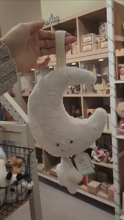 Reach for the moon and you may hear music! The Amuseables Moon Musical Pull features a pair of celestial friends made in recycled fibres. Gently pull the star and a charming original Jellycat lullaby plays from the Moon. With a Velcro fastening which can be attached to a crib or pram, the magic of the night sky can accompany baby whenever it is time to sleep.