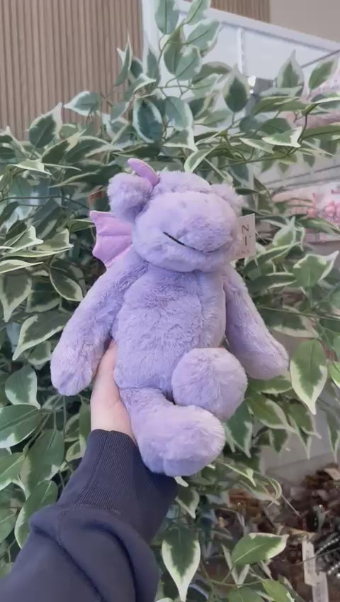 Delight your little one with our Plush Amethyst Dragon, the perfect companion for playtime adventures and naptime cuddles. Featuring soft lavendar colored luxe fur, embroidered eyes, a sweet smile, and flappy ears, Amethyst Dragon is designed to keep your child engaged and comforted. The padded wings and horns add a touch of charm, while the weighted bottom ensures Amethyst sits perfectly upright. Ignite their imagination and offer a cozy mythical friend for naptime this plush dragon is bound to become a treasured companion.
