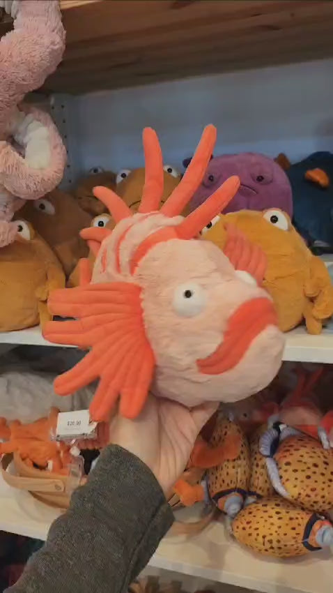 If you thought the ocean was quiet, you haven't met Lois Lionfish. A riot of peach and coral fur, with wild flared fins and stunning stitch detail, Lois loves to make an entrance. Serving beauty with a fringe of soft spines, squidgy lips and bubble eyes.